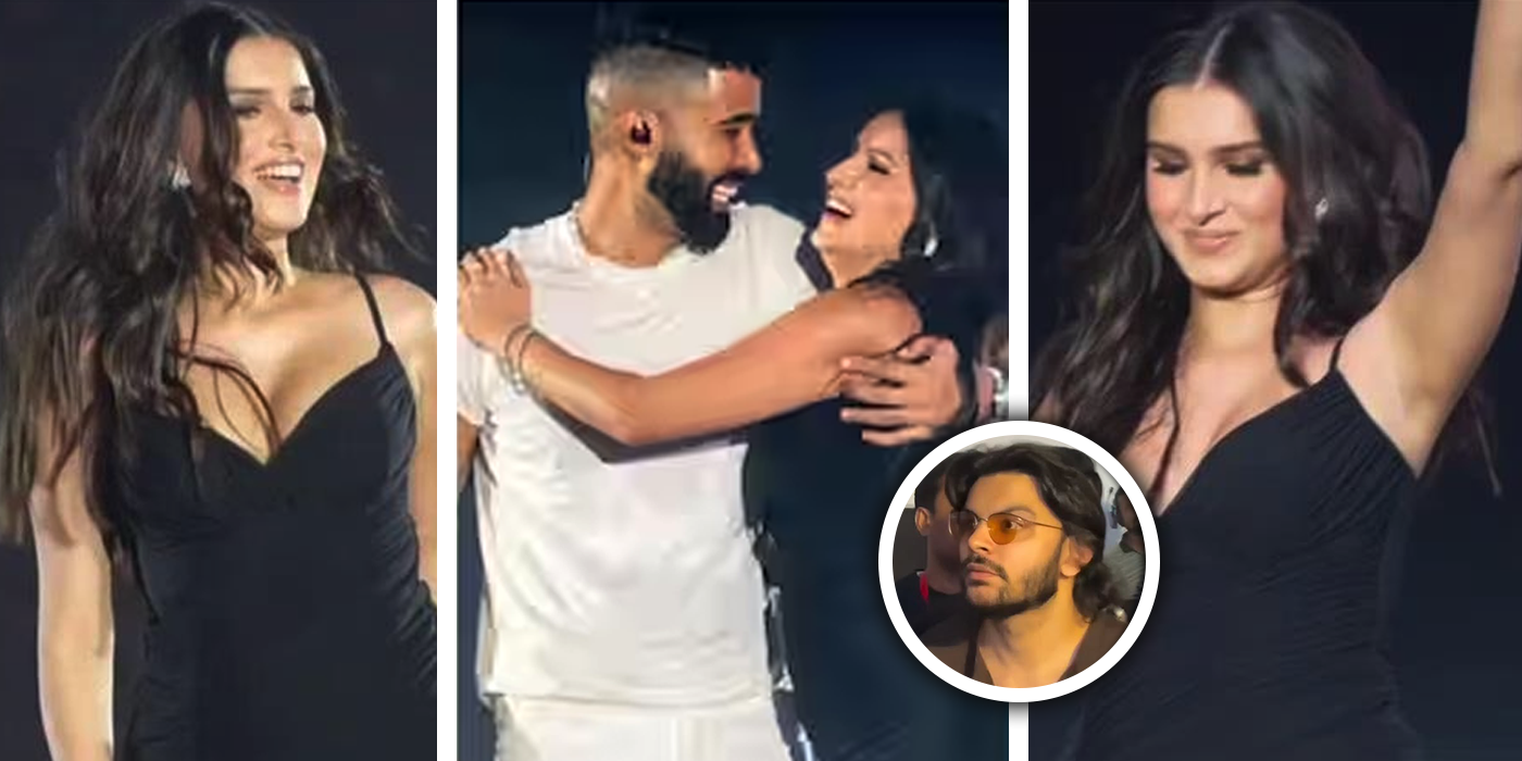 Tara Sutaria hugs and kisses AP Dhillon while her poor bf Veer Pahariya is watching them in audience.